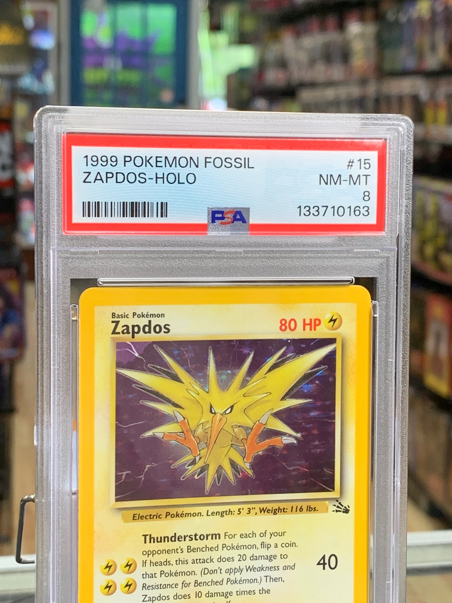Zapdos Holo Fossil 15/62 (Pokemon, Wizard) **PSA 8**